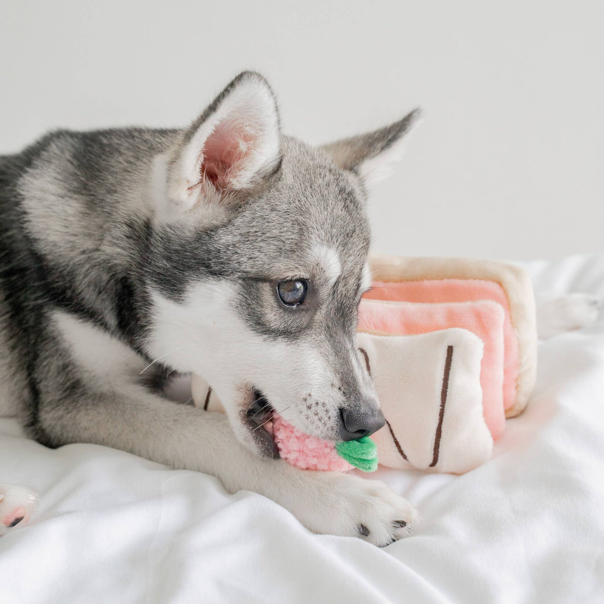 This Strawberry Mille-Feuille is crafted with soft, plush pastry tiers and topped with a fluffy strawberry. The dessert-inspired nosework design invites your pup to sniff, search and snack their way through each delicious layer!